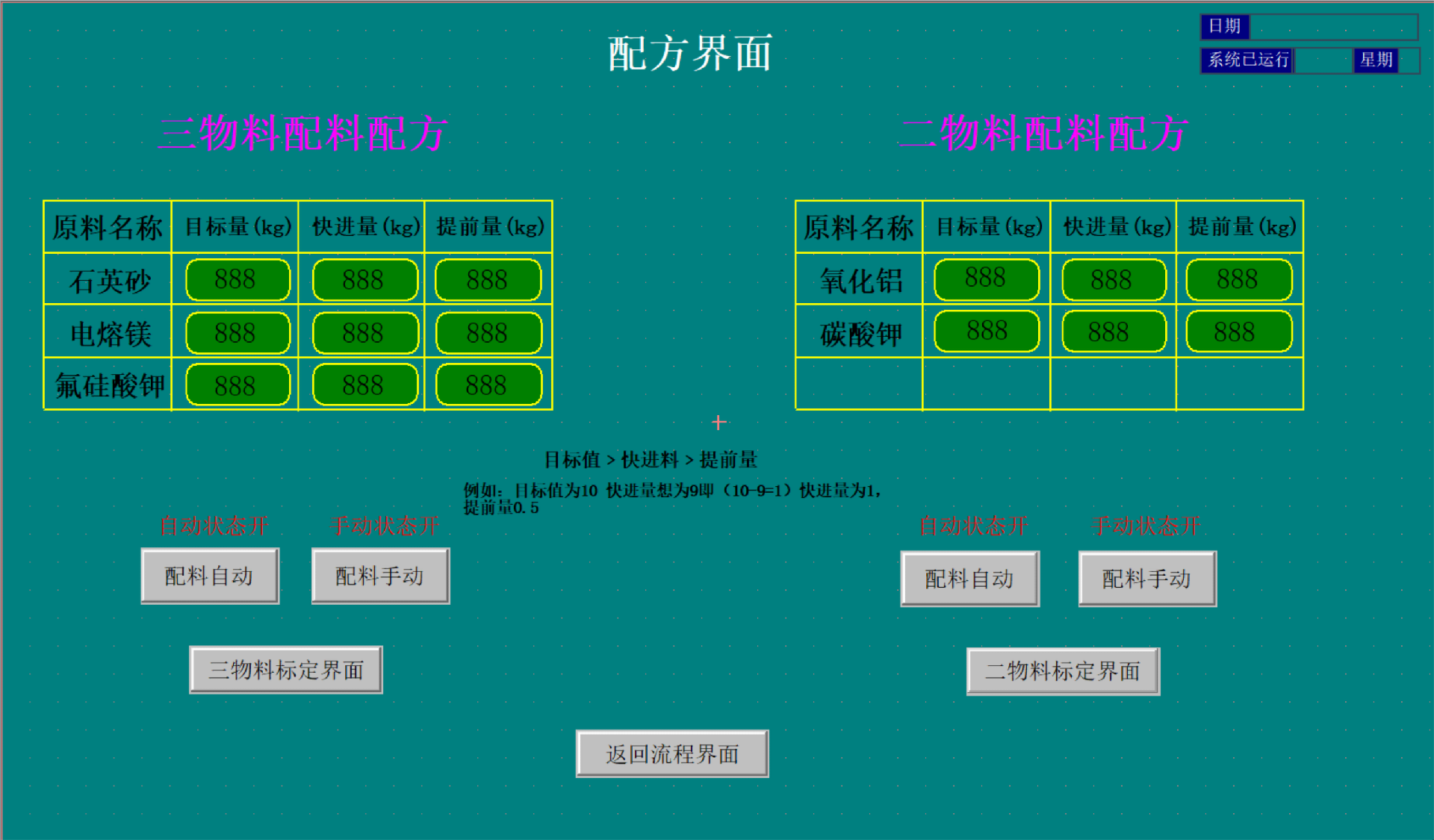 主動配料運轉界面